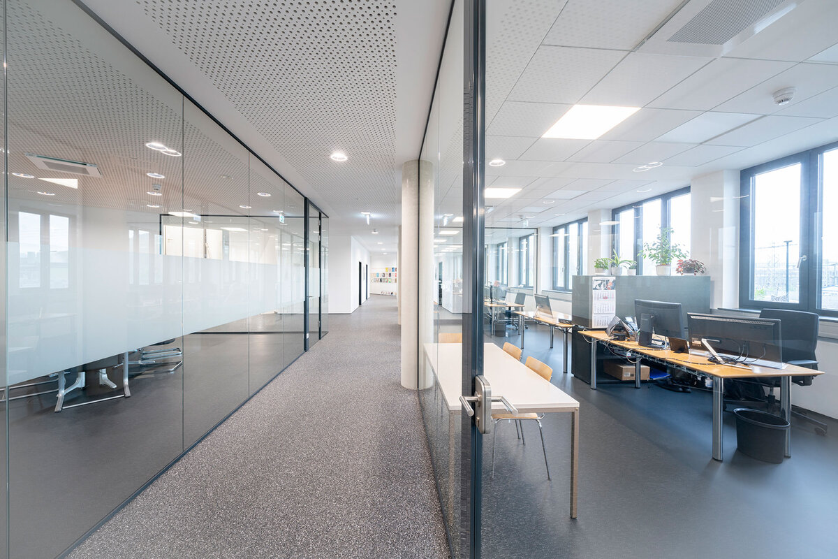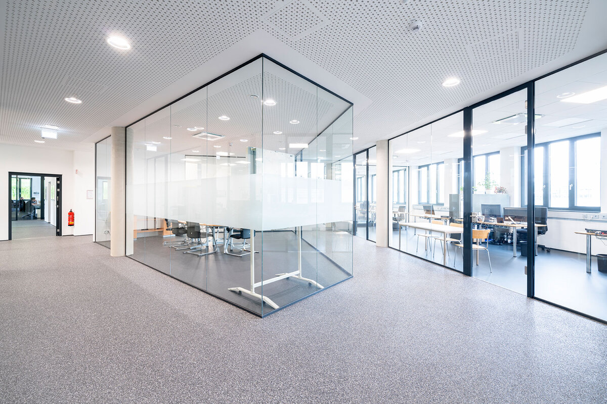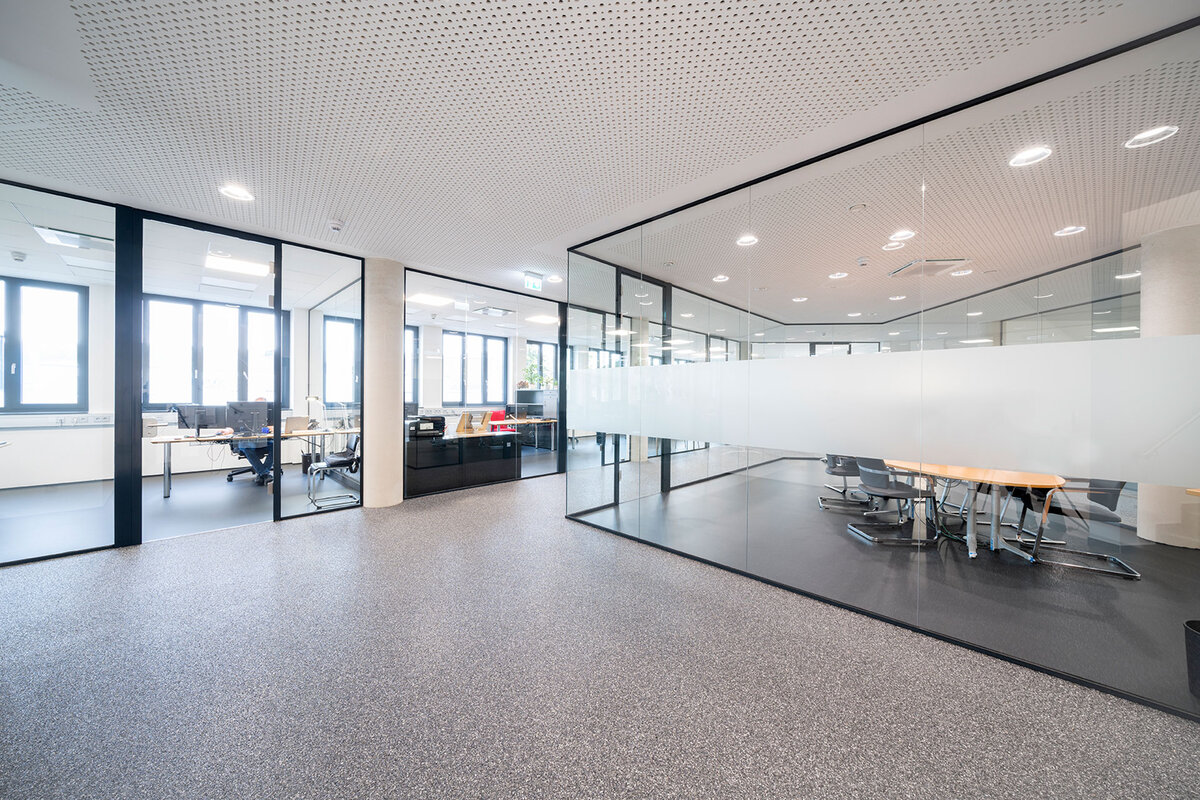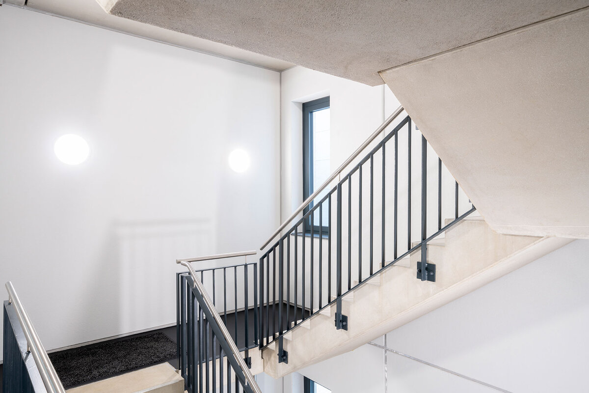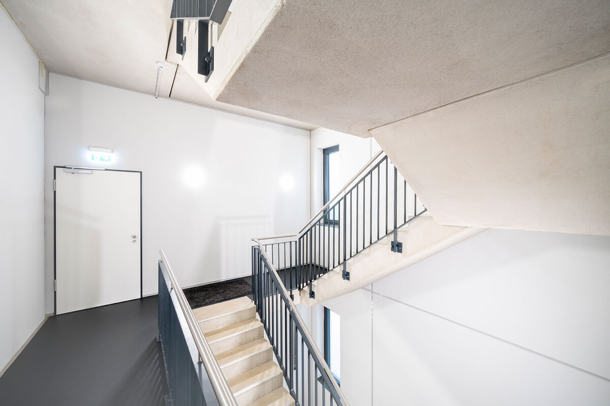 Lern- und Aufenthaltsräume, Meetingpoints, ein Fahrradraum, möblierte Einzelzimmer und WG-Strukturen, alle mit Bad und Küche und natürlich alles barrierefrei und mit Aufzug, in bester Lage. Im unteren Teil des Gebäudes sind Gewerbeflächen anzumieten – Platz um eigene Startup-Ideen direkt zu verwirklichen.